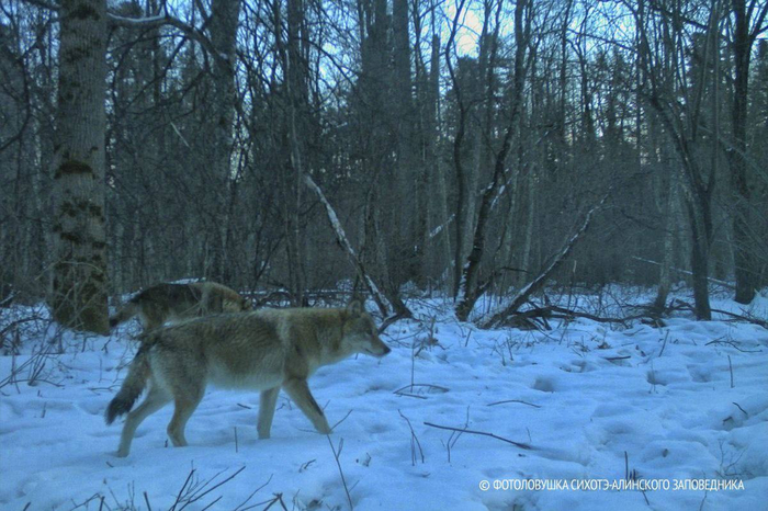 Фотографии волков, снятых фотоловушкой в ареале амурского тигра: в Сихотэ-Алинском заповеднике на севере Приморского края.