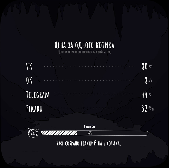 К сожалению котики не едят червей и грязь, в отличие от гоблина, и чтобы котик не “исчез”, нужно подписаться на VK донатс, ну или отправить донат через бусти https://boosty.to/afilinkov/donate (50р месячный запас еды для котика)