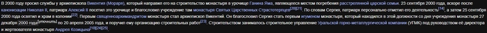 И тут всё понятно. Но здесь говорится о строительстве храма на какие-то пожертвования. Разумеется бог, как всегда, не помог. И пришлось обдирать народ... И как удалось собрать нужную сумму на строительство какого-то монастыря? Да ещё такого большого? О доходах РПЦ ходят много слухов, но фактического подтверждения их нет. Хотя я в этом описании жизни Романова указал уже одного крупного официального спонсора в предыдущей части. Ладно. На этом пожалуй всё. Ждите продолжение.