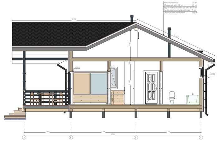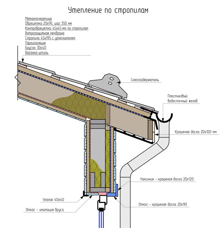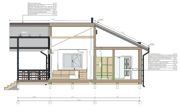 Дом планируется для постоянного проживания, поэтому контур утепления составляет 200 мм. На стенах перекрестное утепление 150+50 мм.