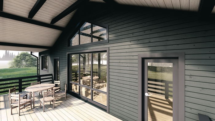 Ниже представлена изначальная визуализация и готовый дом. Найдите десять отличий)