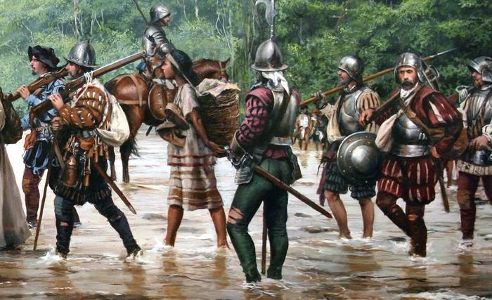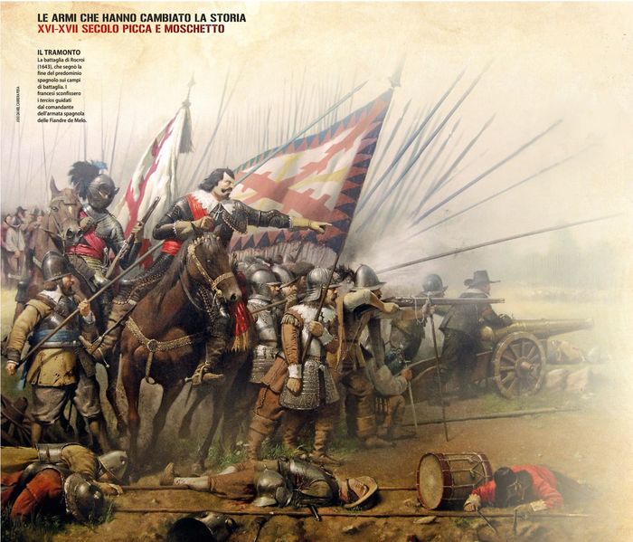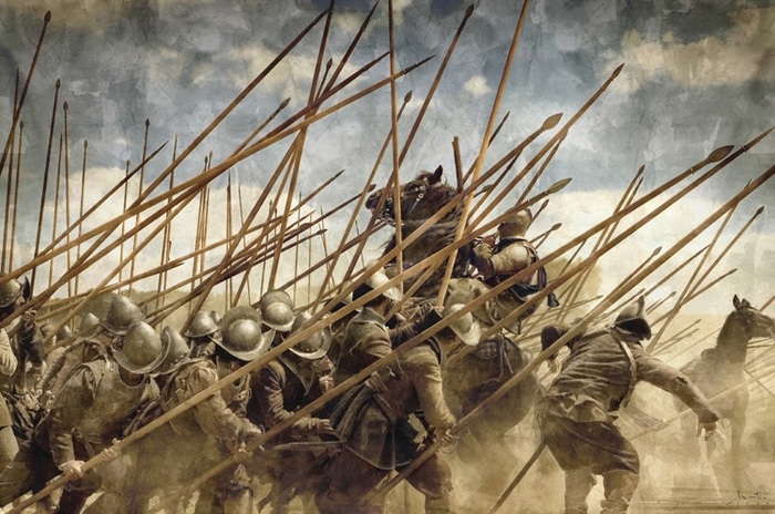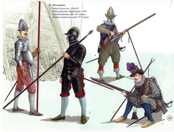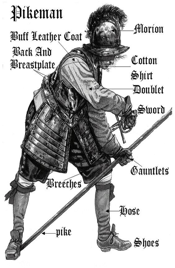 Командиры – те, да, происходили из дворян, принадлежали к старой феодальной знати и могли позволить себе приобретать доспехи, сделанные на заказ. Однако и они стали сильно отличаться конструктивно от доспехов предшествующего времени. Так, уже в 1550 году появляются кирасы с раздельными набедренниками до колен. Нагрудник же кирасы удлинился и превратился в «гусиное брюхо» (что поделаешь, мода есть мода!), хотя на многих доспехах талия на уровне поясницы сохранялась.