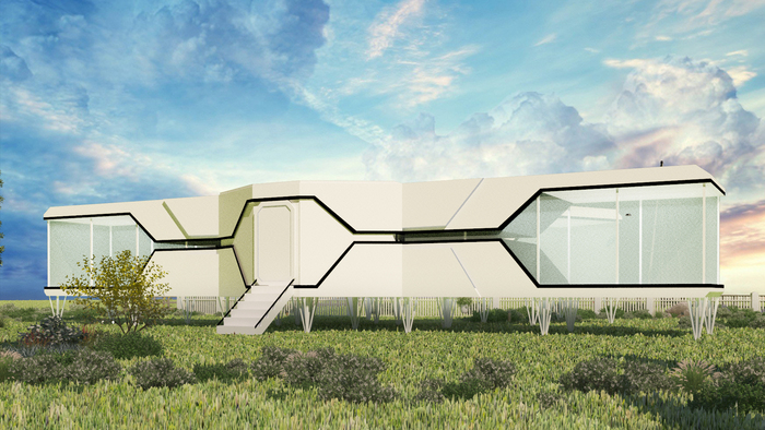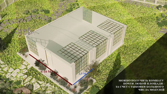 Малоэтажный модульный растущий дом в футуристическом стиле