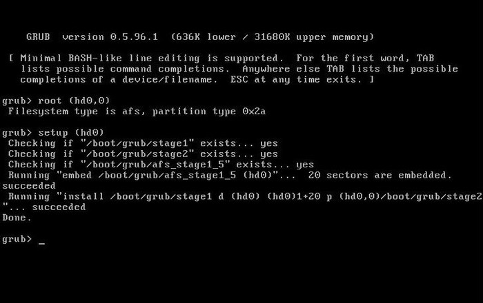 Установка Syllable в отличие от AtheOS стала значительно проще: больше никаких дискет и танцев с бубном в командной строке. Всё произойдёт само. После загрузки с образа нас встречает всё тот же модифицированный GRUB.