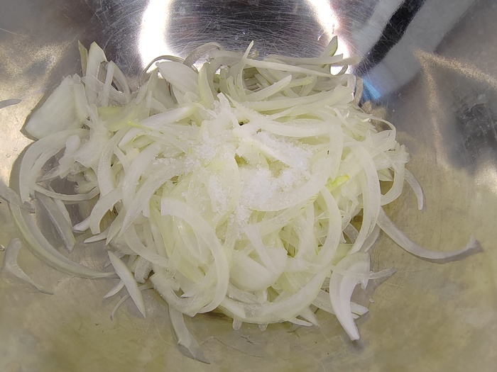 12. Безжалостно и оголтело выжимаем луковый сок - лишняя вода нам не нужна.