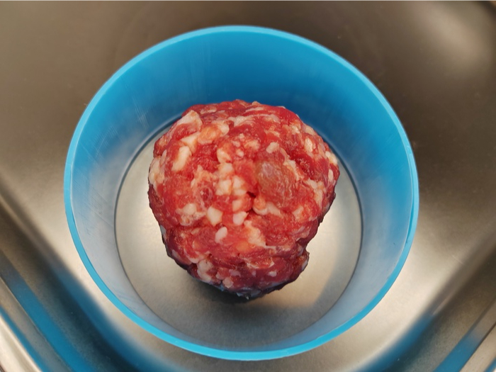 7. Немного перемешаем фарш для равномерного распределения ошметков жира и мяса. Но именно перемешаем, а не вымесим - для смэш-бургеров не нужно формирование белковых нитей.