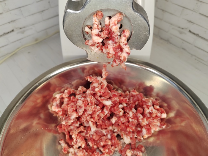 6. Мясо можно порубить и руками, но можно и пропустить через мясорубку с максимально крупной сеткой.