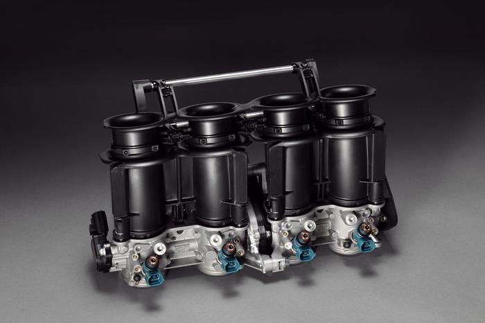 Одной из особенностей моторов Renesis стал перенос впускных и выпускных окон на боковые поверхности статора, а впускные окна сделали двойными, что позволило менять фазы газораспределения. На этой картинке хорошо видно двойные впускные окна и полую внутреннюю структуру ротора.