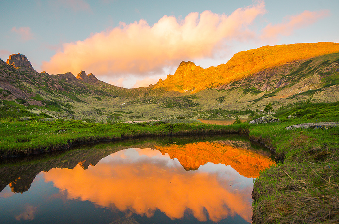 Обычная ошибка фотографов в Ергаках - сразу, в первый же день снимать очень много. Поберегите фоторесурсы! Главные красоты - не возле трассы, а за перевалами. Берите с запасом карты памяти, аккумуляторы. Один фотограф в начале похода гордо заявил, что взял с собой 200 гигов памяти. Ого, дескать, этого точно хватит. Но едва прошли треть маршрута, как все 200 гигов оказались забиты. Каждый вечер бедняга, обливаясь слезами, удалял с карт те кадры, которые, как теперь стало видно, не столь уж и ценны.