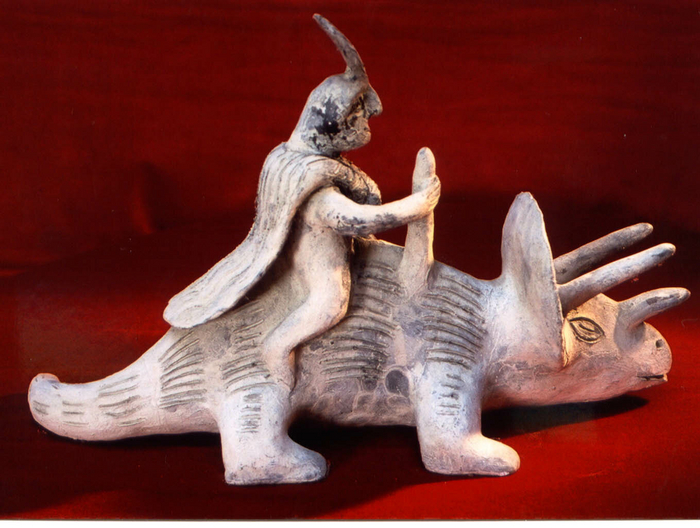 В далёком 1944 году в мексиканском городке Акамбаро (это не напиток и не закуска, если что) местный фермер Вальдемар Юльсруд решил покопаться в земле. Типа, найти там что-нибудь древнее, интересное, чтоб потом на туристах подзаработать. И тут, барабанная дробь, он "находит" 33 000 керамических фигурок, изображающих всё, что только можно: от людей и животных до... динозавров.