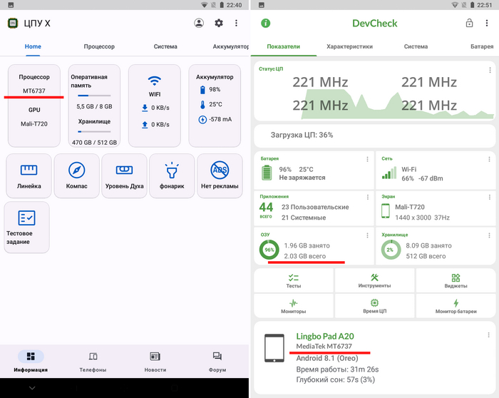 1. Для отображения реального объема ОЗУ используйте DevCheck. Остальные приложения распознают фейки лишь частично или вообще не видят проблем. Как вариант – можно установить громоздкий GFXBench. Он тоже распознал SoC и настоящий объем ОЗУ.