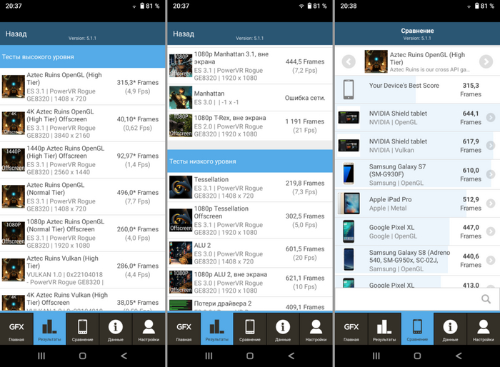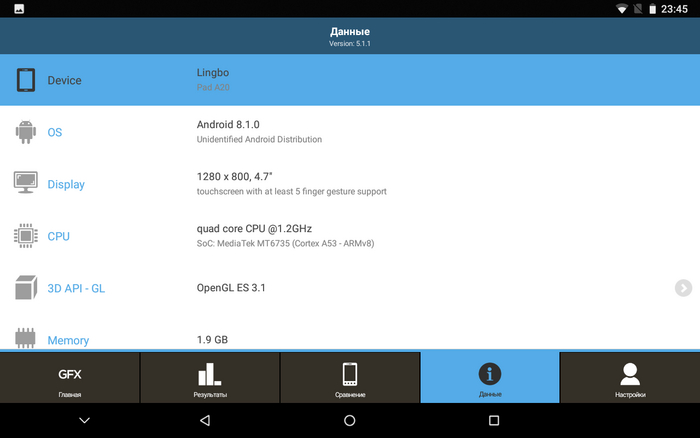 А вот CPU-X, DevCheck и GFXBench утверждают, что имеют дело с Android 8.1 (Oreo).