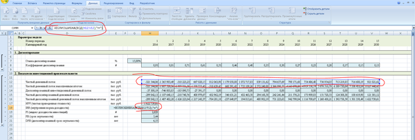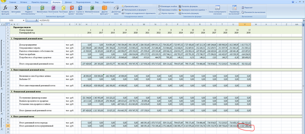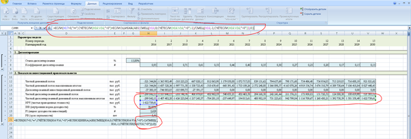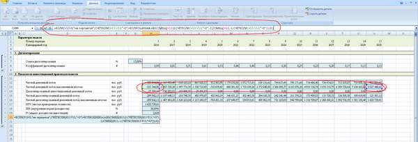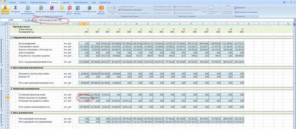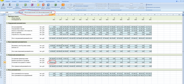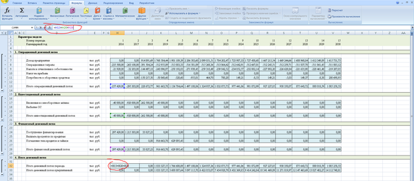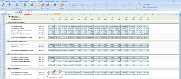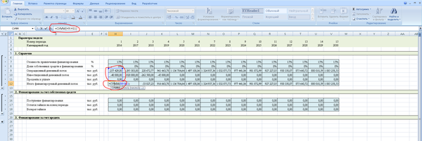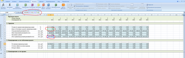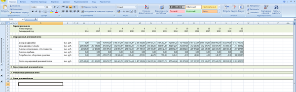 Кроме того, необходимо помнить, что для крупных производственных объектов период прогнозирования может быть более 10 лет. Иногда даже несколько десятилетий. Это чаще всего связано с тем, что объем вложений в проект довольно большой, срок службы оборудования длительный, и окупается вся эта история медленно. Так что, если Вам вдруг придется считать модель для крупного инвестиционного проекта, то помните, что, если у проекта отрицательный NPV, то не факт, что это плохой проект, просто, может быть, Вам нужно продлить период прогнозирования. Нормальным для крупных проектов является период окупаемости от 8 до 12 лет. Это связано с тем, что срок службы производственного оборудования обычно 20-30 лет, а здания и сооружения амортизируются еще дольше. Поэтому долгосрочные производственные проекты хоть и медленно окупаются, имеют хороший операционный денежный поток.