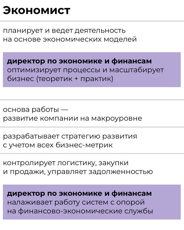 Хороший экономист способен повыситься до директора по экономике и финансам. Его работа затрагивает оба этих сектора, поэтому опыт позволяет специалисту масштабироваться, а его зарплате — вырасти.