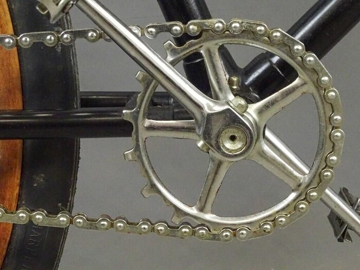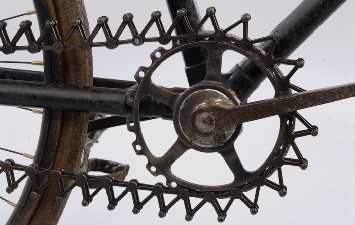 Simpson Lever Chain. The tops of the triangles had cross-bars that engaged the perimeter of the rear chain wheel's flange.