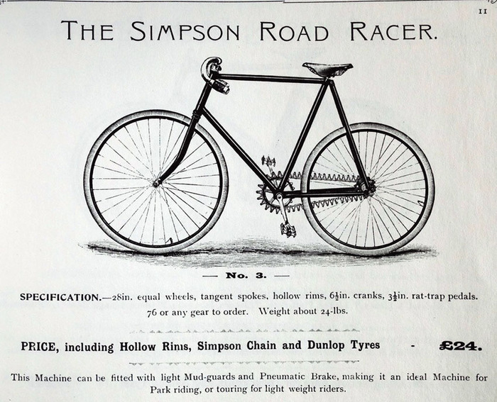 William Simpson заявлял, что его цепь обеспечит преимущество, которое может увеличить эффективность велосепедиста.