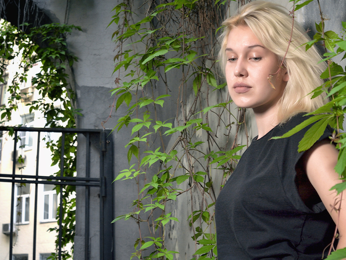 В центре Москвы есть дворики, чистые и тихие. Обычно они с калиткой, но при желании попасть туда можно. Старые дома от времени стали только краше. Трещины на бетоне в рамке из дерзких побегов вездесущего плюща девичьего винограда. Модель Юля (имя измененное).