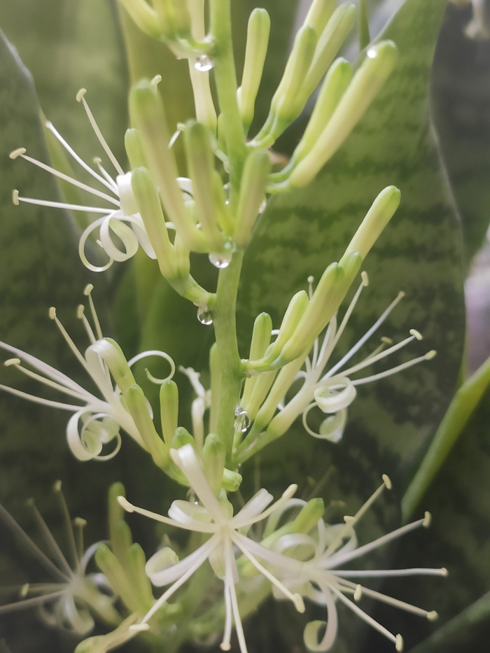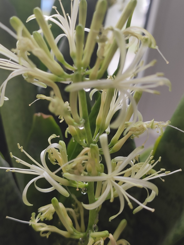 23 NastenaSyringa Комнатные растения Серия Фото цветов Сансевиерия Цветение 6 дней назад Пахнет как ночная фиалка или любка двулистная Слёзы нектара Иногда "тёщин язык" начинает цвести, если растет в тесном горшке на свету после некоторого периода засухи и дальшейшего обильного полива. Вот такой букет на подоконнике. Показать полностью 5 [моё] Мобильная фотография Цветение Сансевиерия Комнатные растения Растения Длиннопост 3 Ещё 0
