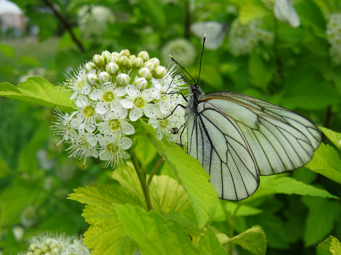 Наверняка все видели этих белых бабочек с черными прожилками. Некоторые ошибочно считают их капустницами, но это другой вид, хотя они в каком-то смысле родственники (обе из семейства белянок). Боярышницами они называются не за любовь бабочек к цветкам этого кустарника, а за то, что их гусеницы питаются им. Впрочем, с тем же успехом они питаются черемухой, яблонями, сливами и многими другими плодовыми деревьями и кустарниками, в общем, тот еще сельскохозяйственный вредитель. В годы массового размножения способны объедать деревья налысо, вместе с почками, листьями и цветами, оставляя одни голые ветки.