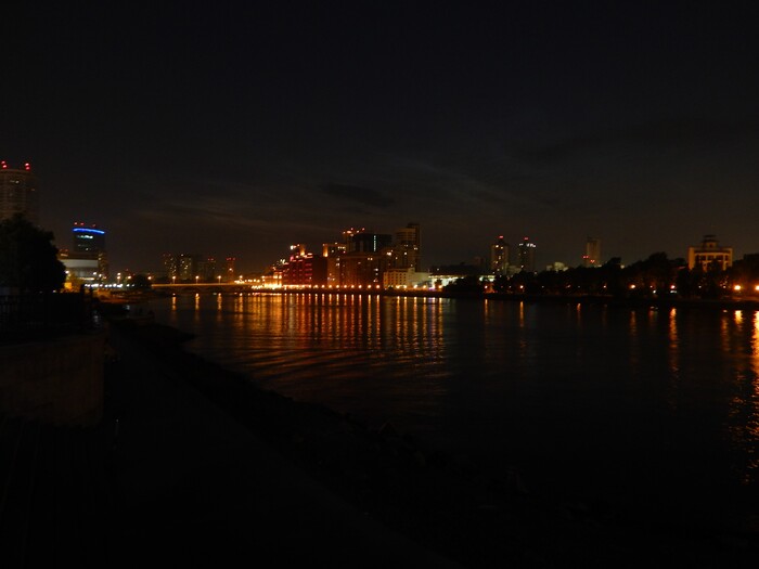 Уже окончательно стемнело, а на небо вышла луна. Но несмотря на это на плотинке много народу: кто-то делает предложение руки и сердца, кто-то катается на катере, или дымит кальяном, а кто-то и просто наслаждается ночными видами города