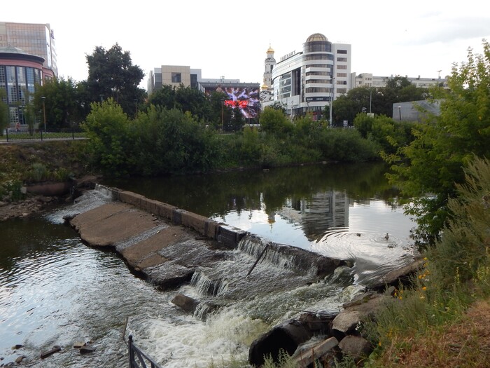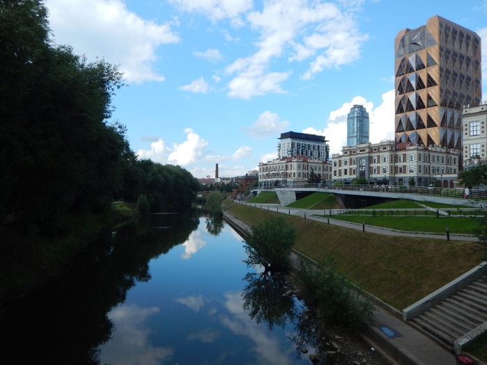 Вид на плотинку, колледж Ползунова и здание Городской думы Екатеринбурга