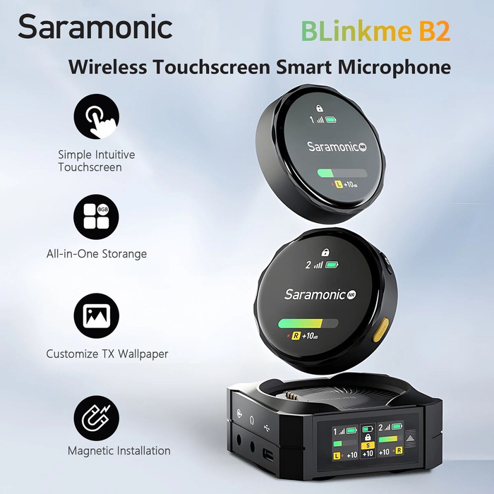 Беспроводная петличная микрофонная система с цифровой модуляцией и встроенной антенной, совместимая с iPhone, Android-устройствами через Type-C, DSLR-камерами, ПК и ноутбуками. Комплект включает пару согласованных элементов для записи двух источников звука одновременно. Конденсаторный капсюль с всенаправленной диаграммой направленности обеспечивает равномерный захват голоса.