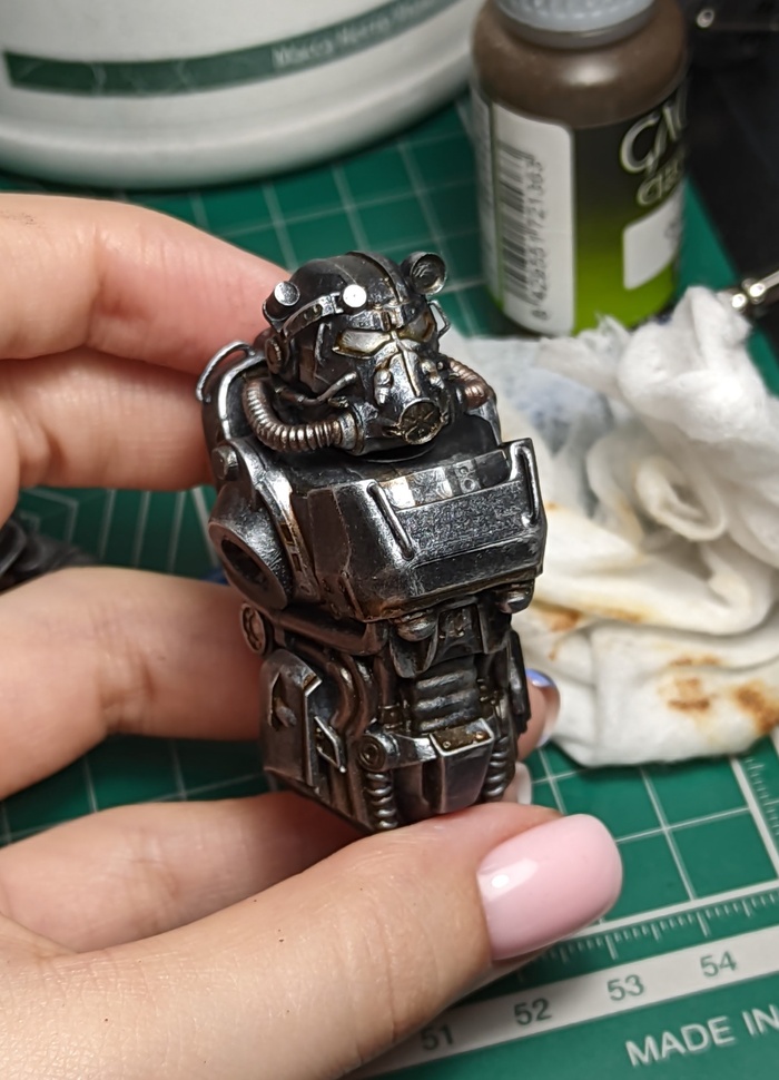 Как-то понравилось мне работать с металиками. Эти потертости, капли ржавчины, масляные проливы, царапины. В общем за время покраса было докуплено немножко металликов и опробовано.