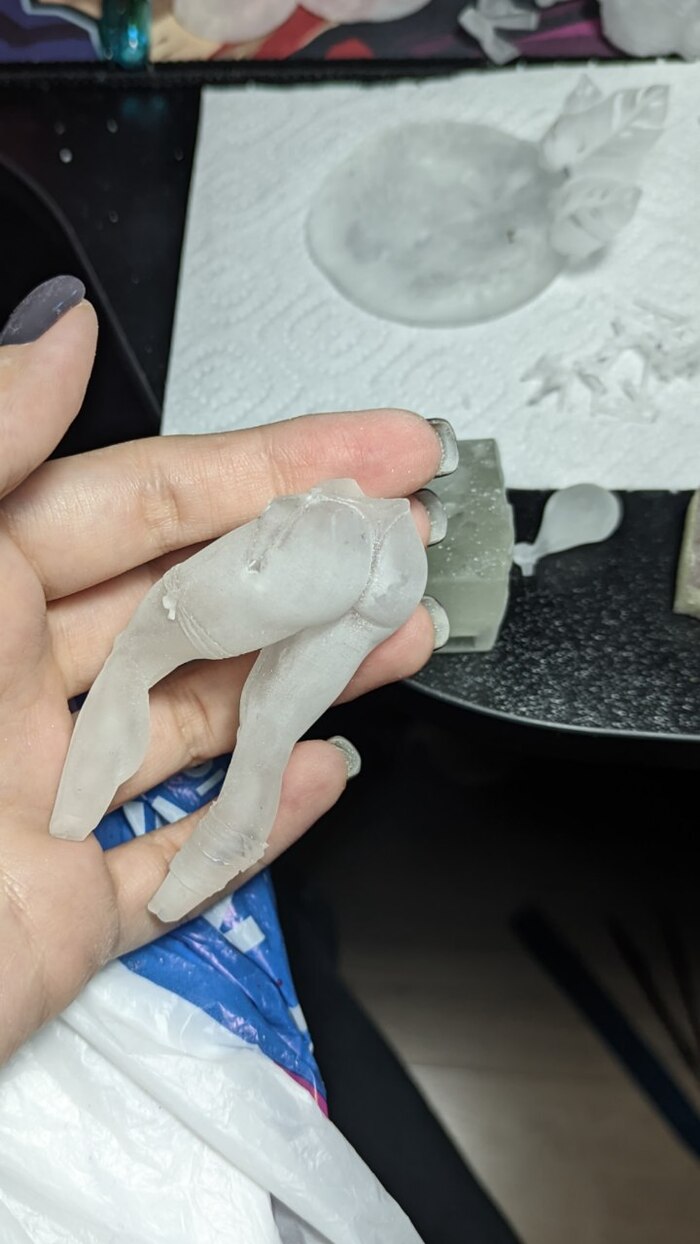 И вот, почти финиш и почти готовая нога с синими переливами от добавок в смолу и заливоньками от цитадели..