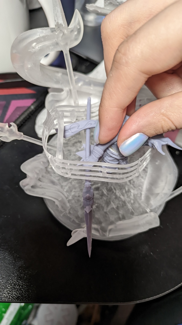 Для такой высокой фигурки пришлось печатать подставку частями. Был у нас один знакомый, который юзает сию шпатлёвку для фигурок. После этой попытки шпатлевка была выброшена, а я вернулась к любимому цианокрилату и смоле - это комбо работает всегда!