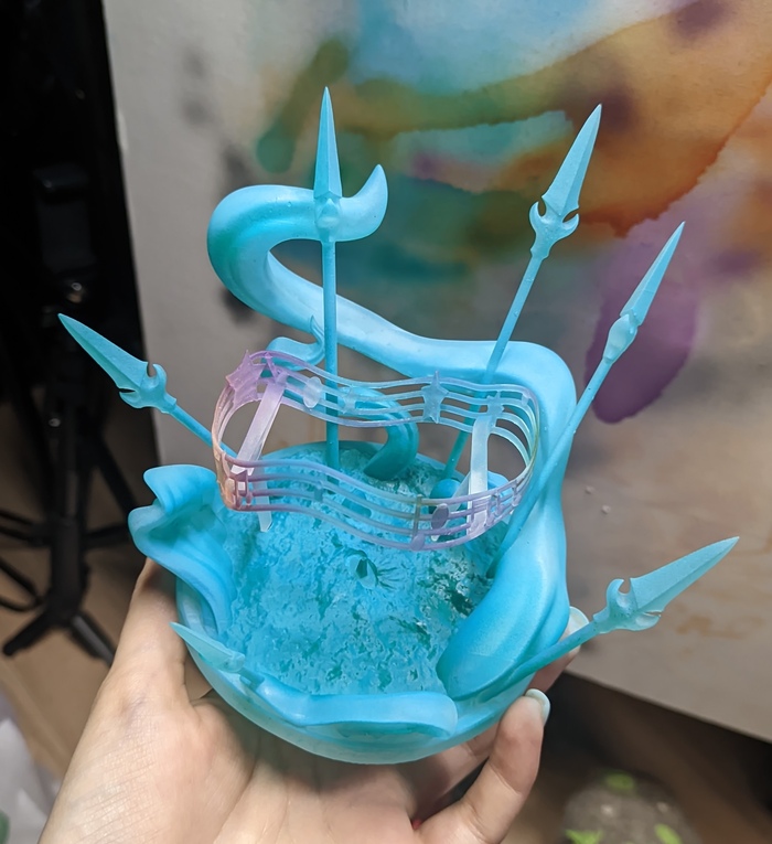 Прозрачность удалось оставить на нотном стане, но немножко не получилось с подставкой, есть у меня подозрения почему =) Буду тестить на других уже фигурках.