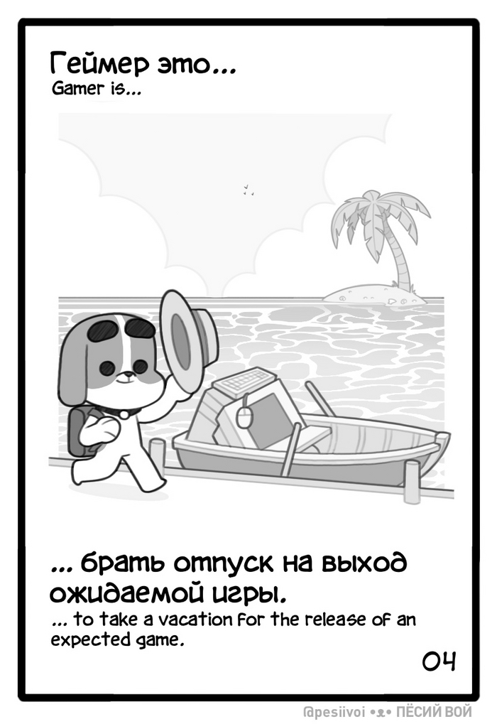 89 pesiivoi Комиксы, от которых иногда хочется выть 01. Геймер это... Серия Геймер это... 2 года назад А что, если вместо жевательной резинки «Love is...» была бы «Gamer is...»? Какие бы это были вкладыши? Пишите в комментариях ваши варианты и самые лучшие я попробую нарисовать. P.S. Новые вкладыши постараюсь выкладывать каждую среду. Показать полностью 1 [моё] Комиксы Авторский комикс Геймеры Вкладыши Геймер это 2 Ещё 0