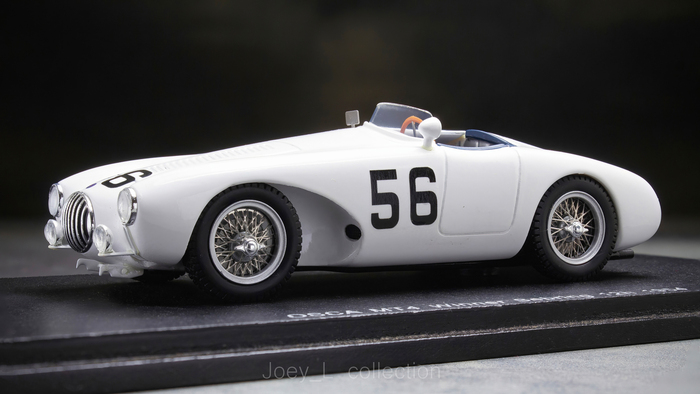 Модель представляет собой версию с Ле Мана 1952 года, и, одновременно, актуальный внешний вид автомобиля #0202A, выполненную Styling models более двадцати лет назад. Этот производитель сейчас всем известен под названием BBR, и до переименования выпускал киты (и собранные на их основе готовые модели) редких гоночных Ferrari, которые сейчас невероятно редки и ценны. Абсолютно удачный выбор – единственный финишировавший Ferrari в знаменитом Ле Мане, в 1952 году, да и ещё не последним. Конечно, сейчас BBR сделали бы модель более детализированной, (например, здесь нет сквозной радиаторной решётки, все вентиляционные отверстия также несквозные), но я просто в восторге от этого великолепно окрашенного пропорционального гармоничного кузова. Для модели был подготовлен отдельный бокс BBR и металлическая табличка. Отличная внешняя копийность, великолепный внешний вид, отсутствие жёлтого клея под травлёными элементами (грех ранних BBR уже под новым именем, 2000-е), абсолютный раритет – это ли не мечта?