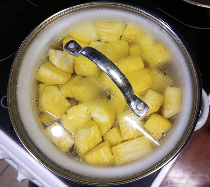 При варке очищенного картофеля соль добавляется в начале тепловой обработки во избежание выщелачивания минеральных солей.