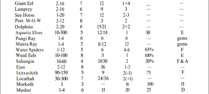 Пожиратели кораллов, безвредны, пока их не напугать. В этом случае ведут себя как пурпурный червь с 20 кубиками ударов. Обладают сокровищами.