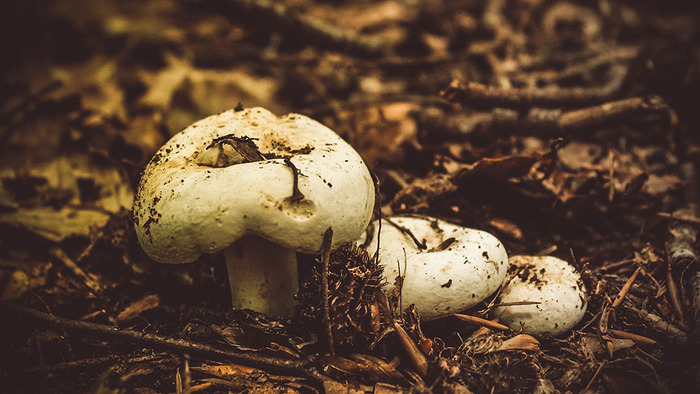 Мякоть мягкая и сочная, довольно ломкая, белого цвета, кисловатая на вкус. Запах слабый, сначала лимонный, а позже становится неприятным, похожим на мышиный. При высушивании становится ломкой, волокнистой и очень лёгкой.