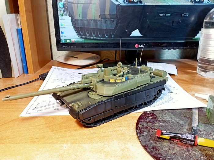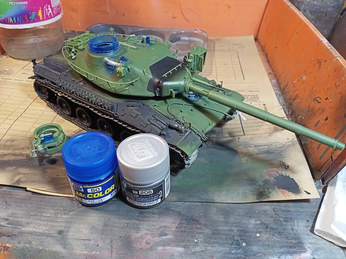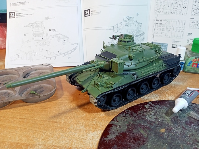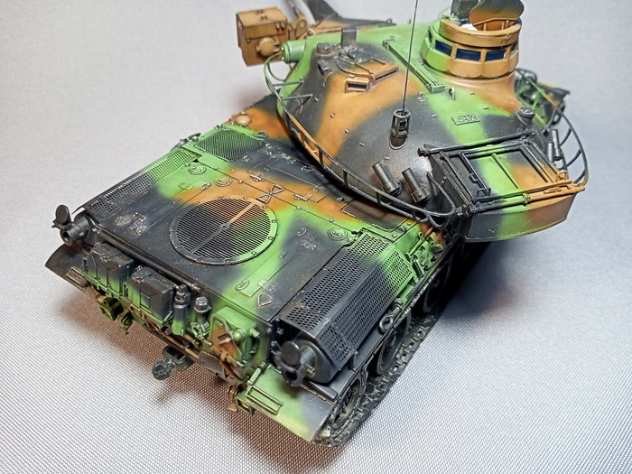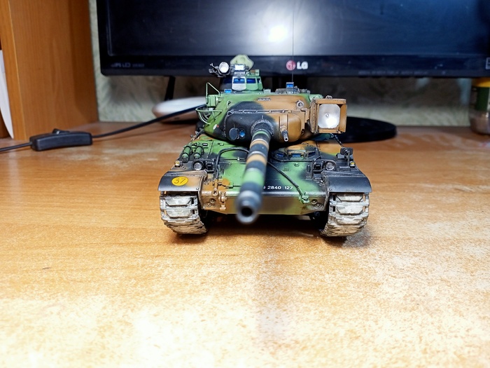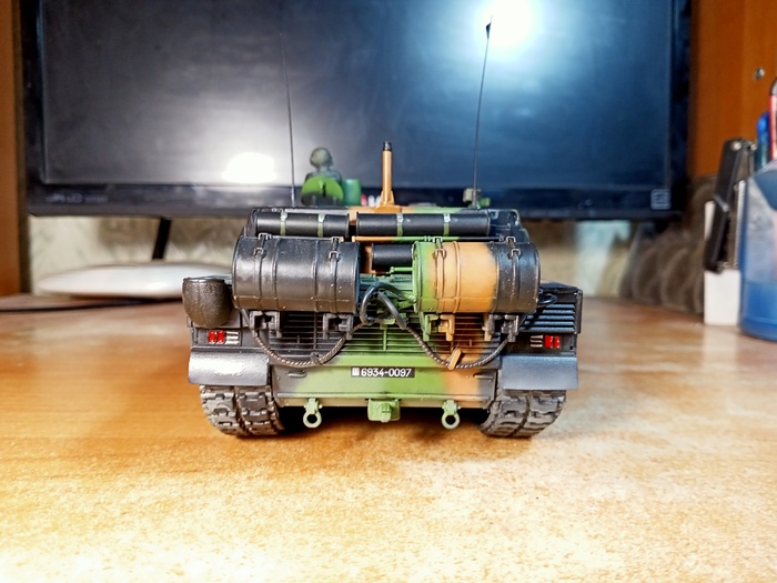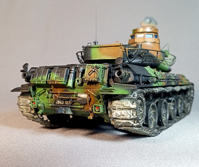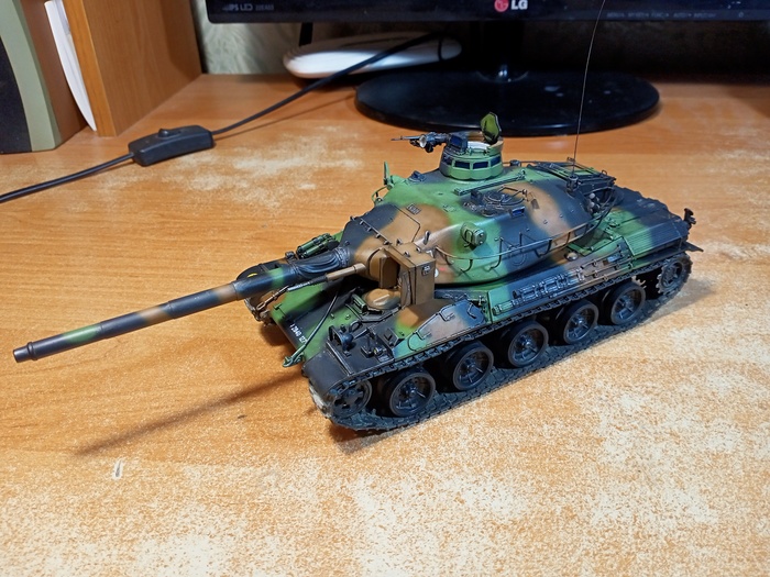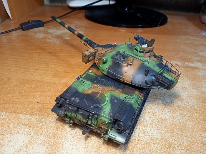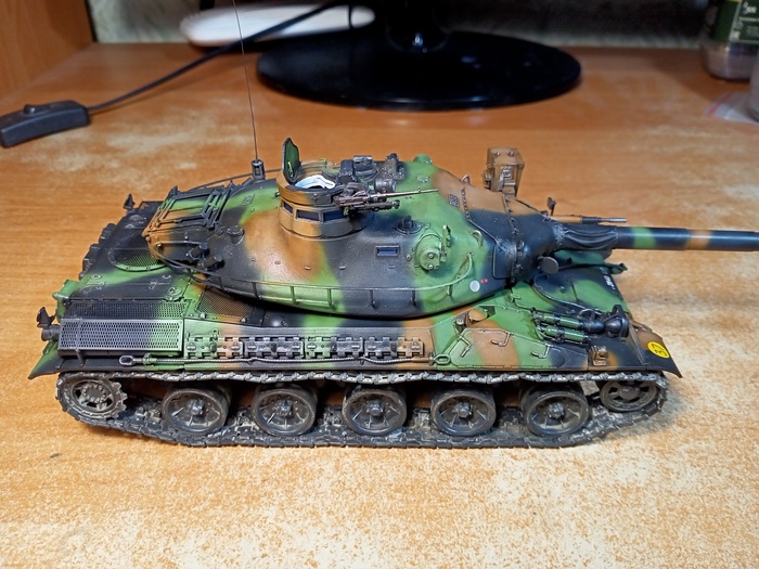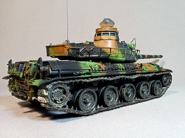 Представлена модель Strv.103C с бульдозерным отвалом, Швеция, 1980-е годы. Модель фирмы Trumpeter, масштаб 1/35.