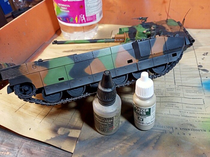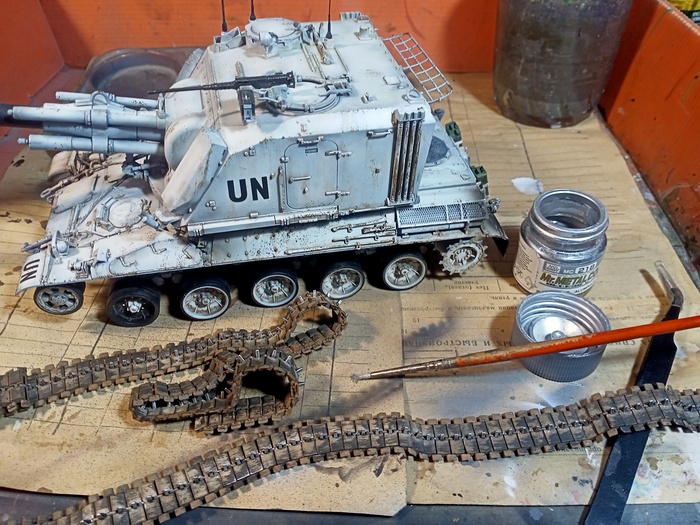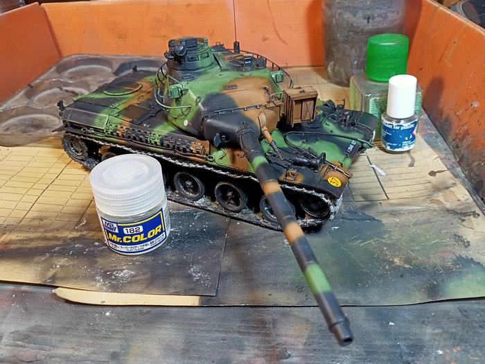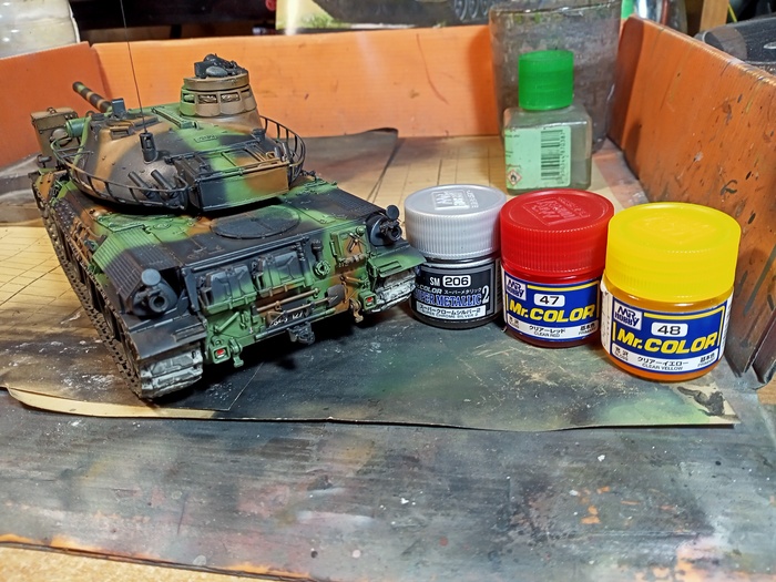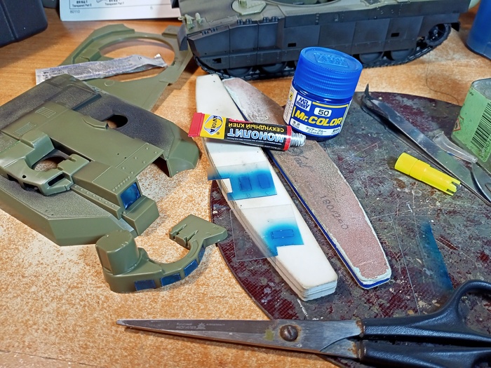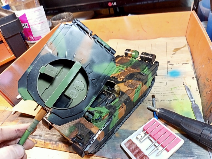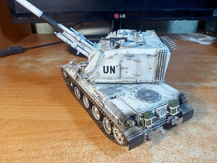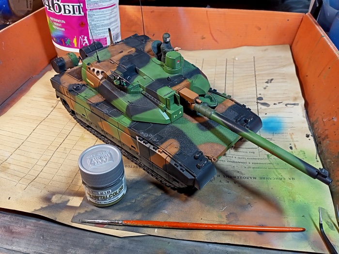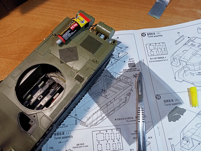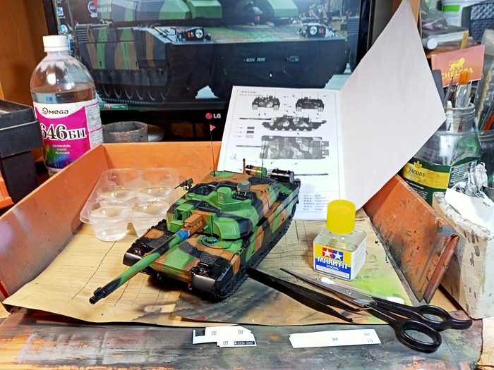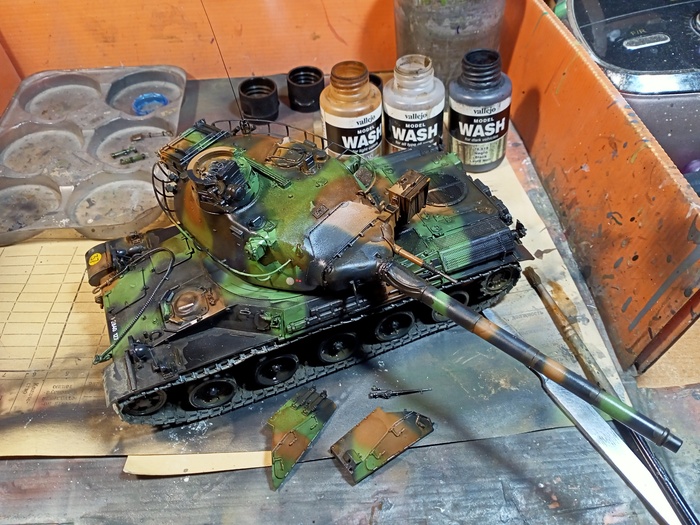 Представлена модель Strv.103C с бульдозерным отвалом, Швеция, 1980-е годы. Модель фирмы Trumpeter, масштаб 1/35.