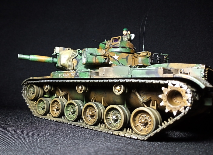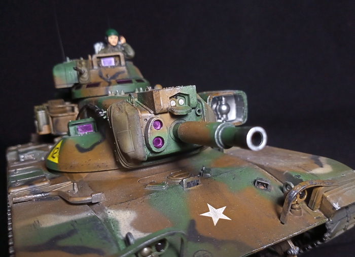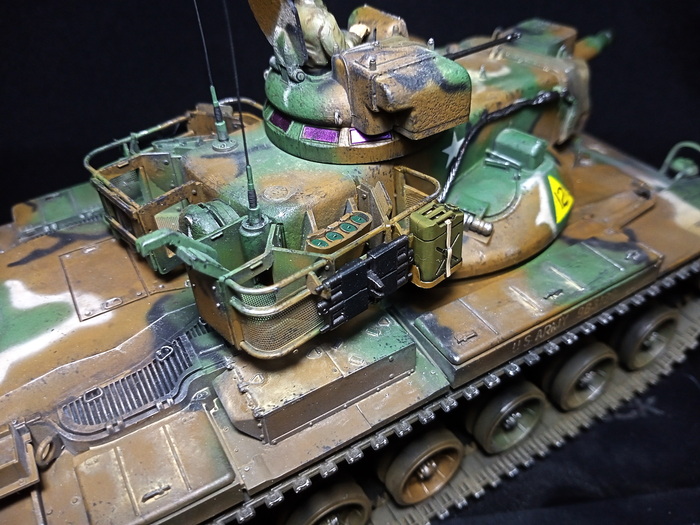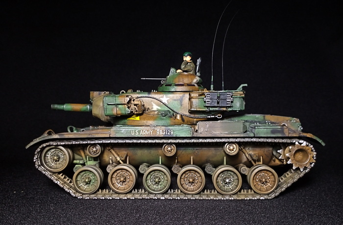 С обеих сторон башни располагались люки квадратной формы, открывавшиеся в сторону кормы. Кормовая часть башни была оборудована двумя дверями для подачи боеприпасов и выхода экипажа. Для стабилизации орудия во время стрельбы на грунт опускались два сошника, прикрепляемых к кормовой части корпуса. Ходовая часть состояла из семи катков по обеим бортам, ведущего колеса спереди и направляющего - сзади. Для верхней ветви гусеницы поддерживающие катки не предусматривались. Гаубица M109 была оснащена приборами ночного видения, но не имела средств защиты от оружия массового поражения. В комплект системы управления огнем (СУО) входили следующие приборы: перископический прицел М118С (для стрельбы прямой наводкой) и прицел панорамного типа М117 (с закрытых огневых позиций) с четырехкратным приближением и углом зрения 10°, квадранты командира М15 и наводчика М1А1. САУ M109 могла преодолевать водные преграды, для чего машина оборудовалась девятью воздушными баллонами: по четыре с обеих сторон и один - спереди. Скорость на плаву составляла 6.43 км/ч. По суше же 405-сильный двгатель Detroit Diesel 8V71T разгонял установку до 56 км/ч при запасе хода в 350 км. В США на вооружении каждой бронетанковой и механизированной дивизии находилось 54 гаубицы M109 (по три дивизиона 18-орудийного состава). Всего было выпущено 2111 САУ этой версии, использовались они преимущественно во Вьетнаме.