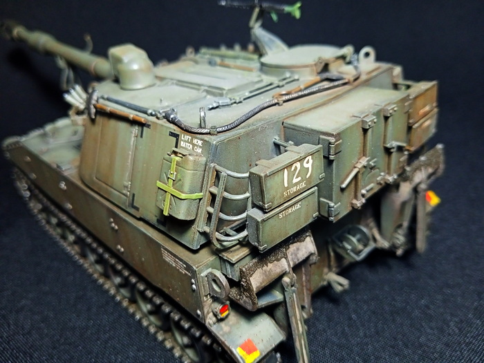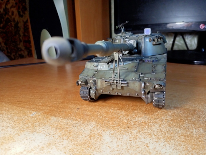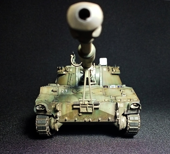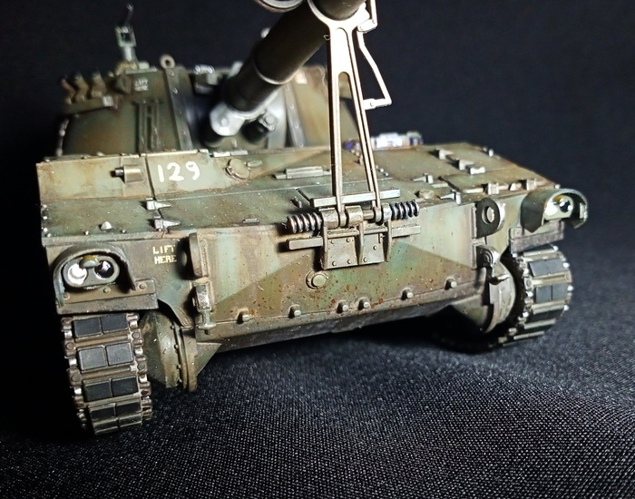 Представлена модель M109A3G из состава 72-ой Отдельной Механизированной бригады имени Чёрных Запорожцев Сухопутных войск Вооружённых сил Украины. Модель выполнена без привязки к конкретной машине, подобные машины защищали и освобождали окрестности Харькова в августе 2022 года. Модель фирмы Italeri, масштаб 1/35.