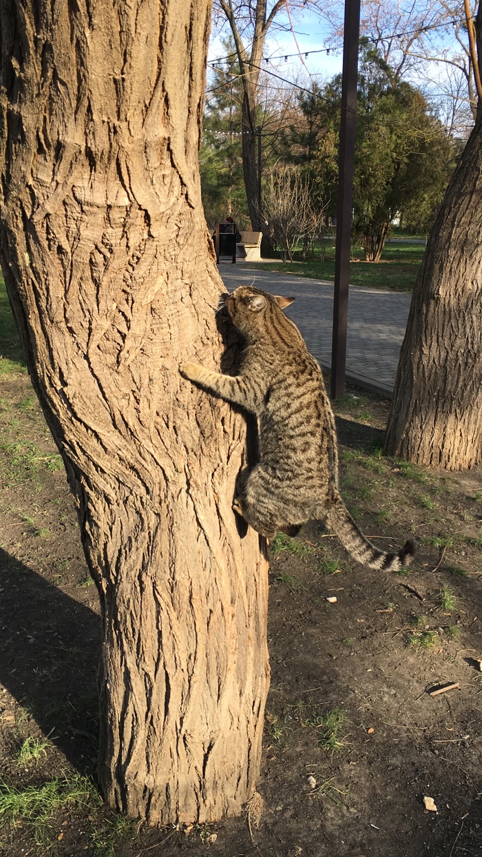 Если это коты бездомные, то этой зимой им лафа, потому что зимы нет. Просто ни одной снежинки не упало ни разу. А в тот день, 23 января, было градусов 16-17 тепла.
