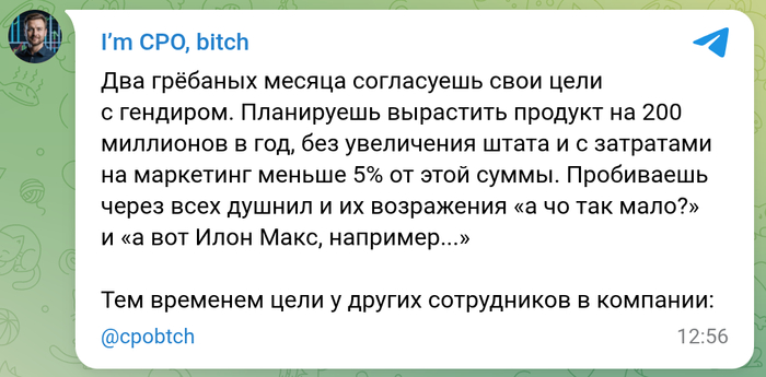152 imctobitch Норм автор Юмор для всех и каждого Реалистичные цели Серия I'm CPO, bitch 1 день назад Показать полностью 1 [моё] I`m CTO bitch Цель Амбиции Спортивное тело Планы на будущее Реалист Длиннопост 16 10 8 3 2 1 1 Ещё 2