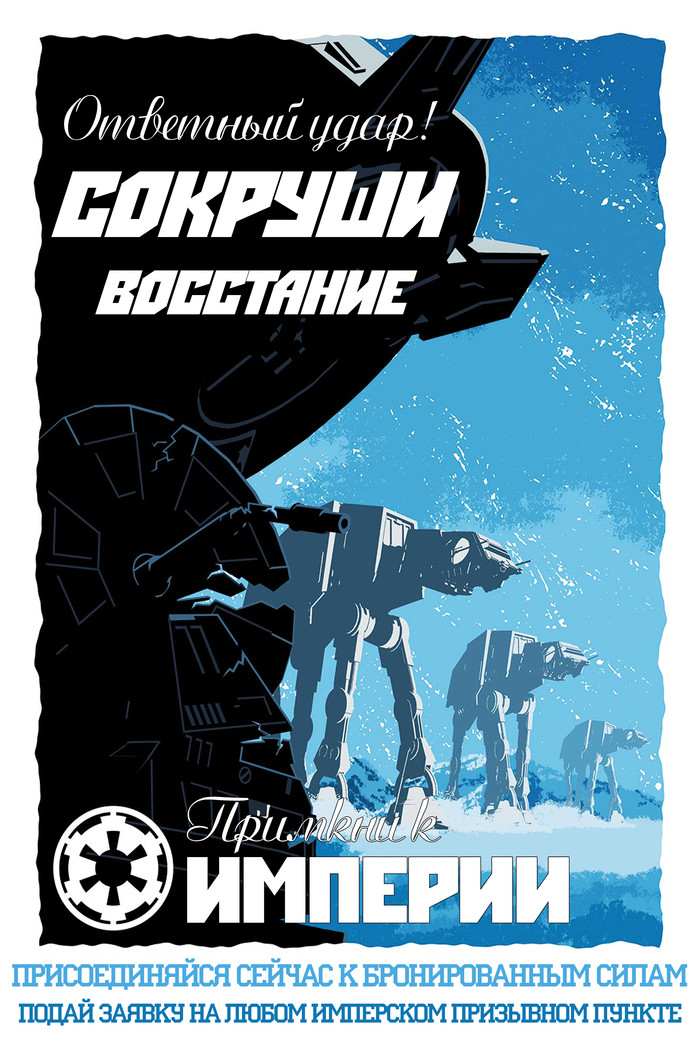 1085 Hoygeoky Star Wars Серия Imperial Posters Плакаты пропаганды по Звёздным Войнам ч.3 4 года назад P.S.: поскольку в очередной раз возникают вопросы, повторяюсь - я не рисую данные плакаты, я просто перевожу (как умею) с иностранных языков. Все вопросы по содержанию плакатов и шрифтам - к авторам. Часть 1: тут.Часть 2. тут. Показать полностью 23 Star Wars Агитационный плакат Пропаганда Перевод Длиннопост 14 6 3 Ещё 0