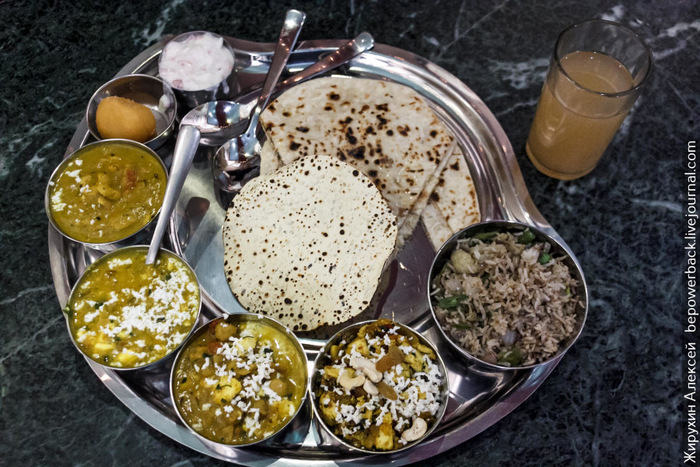 Чаще всего встречаются вегетарианские заведения, но можно найти и non-veg. Там вы сможете найти блюда из курицы, ягненка, баранины и рыбы. Свинину вообще не встречал, а говядину только на Гоа. Блюда с мясом стоят в полтора-два раза дороже вегетарианских.