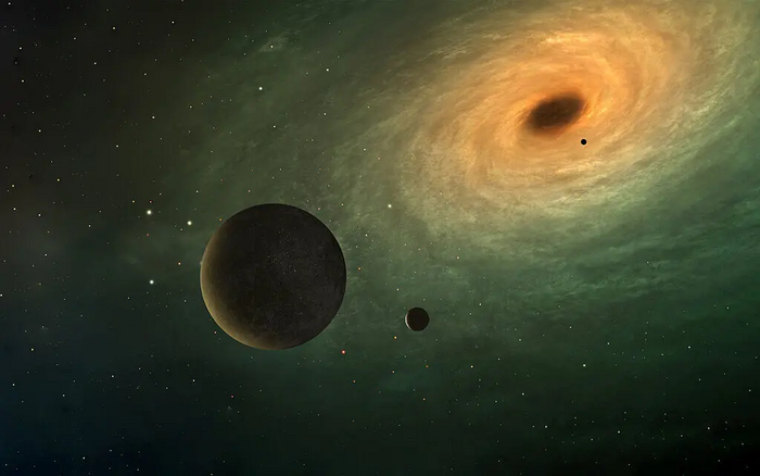 Во-вторых, бланета вращается вокруг чёрной дыры, а не вокруг звезды, как это делают планеты.