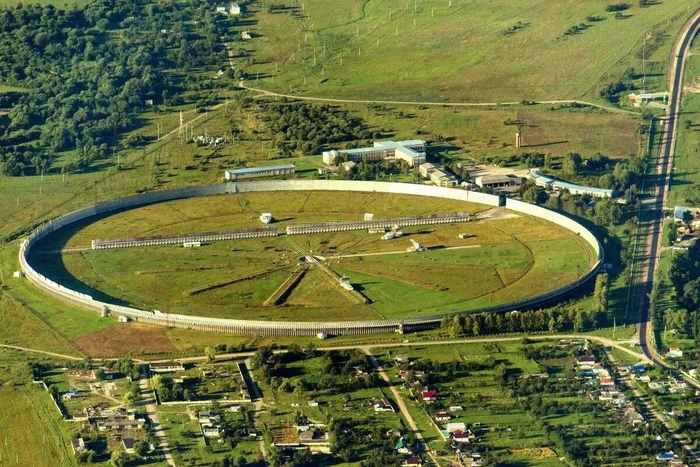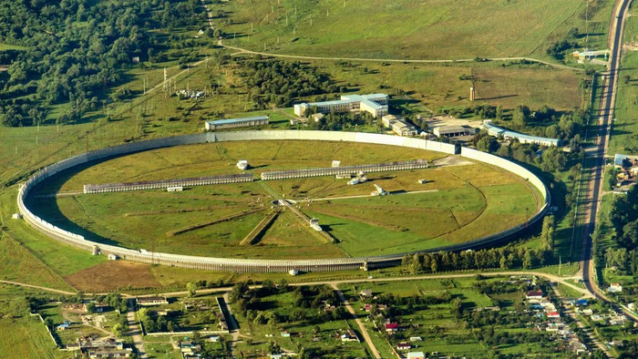 В окрестностях станицы Зеленчукская, что находится в Карачаево-Черкесской Республике, есть очень необычный объект. Издалека он похож на круглое поле, огороженное высокими металлическими щитами. И что же это такое?