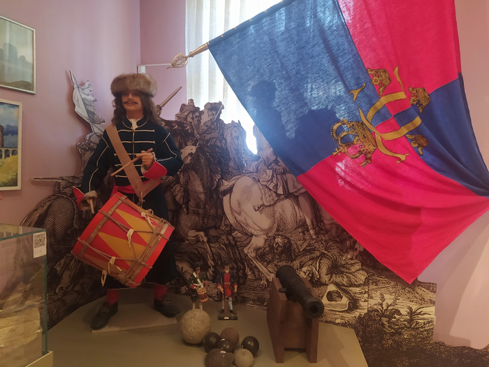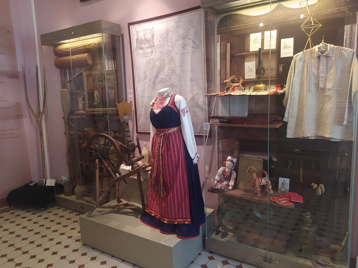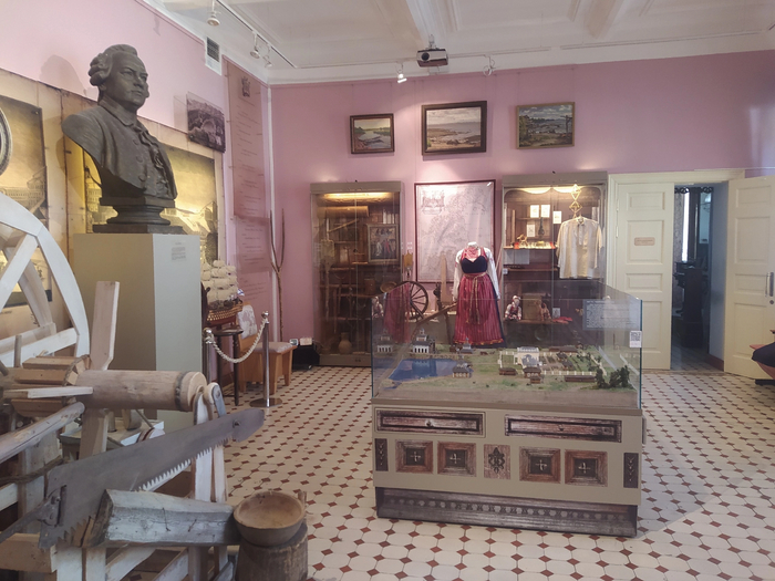 Далее, экспозиция рассказывает о том, как город Ломоносов связан с великим русским учёным, имя которого он носит. Оказывается, неподалеку от Ораниенбаума располагалась усадьба Ломоносова, и стекольный завод, где он создавал мозаику и производил опыты. Один из залов посвящен дореволюционному быту жителей Ораниенбаума и известным горожанам. Для меня было неожиданностью узнать, что в Ораниенбауме жил Федор Федорович Стравинский, известный бас, певший в Мариинском театре, отец композитора Игоря Стравинского. В музее выставлены несколько сценических костюмов певца и его фотографии с различными известными людьми той эпохи, с которыми он был знаком.