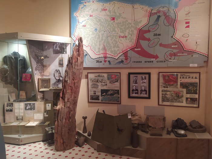 Ну и последний зал, естественно, посвящен Великой отечественной войне, Ораниенбаумскому пятачку, единственному месту в Ленинградской области, которое, как и сам Ленинград, не было оккупировано немцами. В зале даже есть небольшой макет кабины самолёта, где дети могут поиграть, и пара винтовок, которые тоже можно подержать в руках и поклацать затвором.