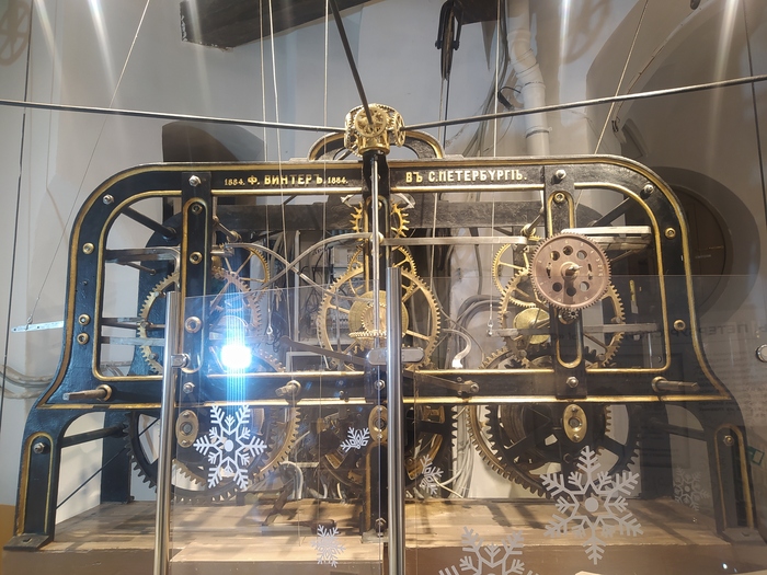 Поднимаемся почти на самый верх, и нашему взору открывается часовой механизм башни. Часы до сих пор работают, отсчитывая время.