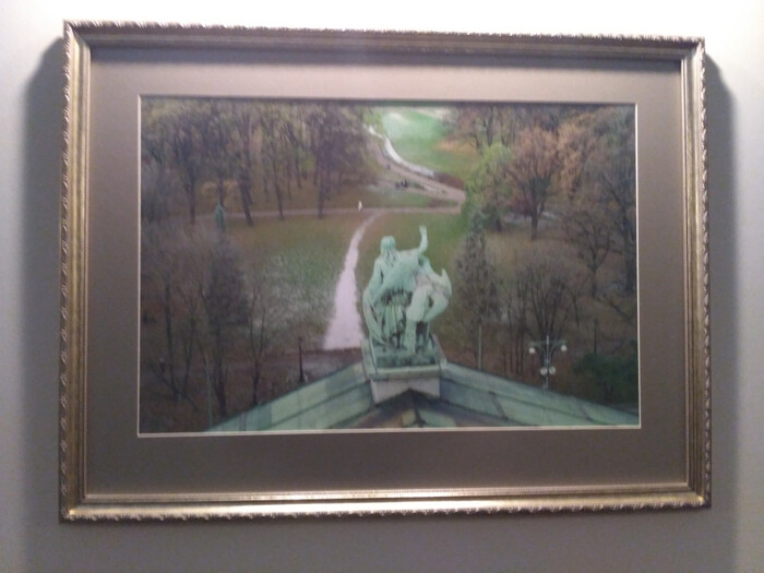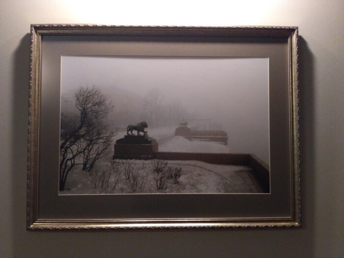 Далее, мы следуем через коридор, где развешены фотографии с видами Петербурга к анфиладе парадных зал.
