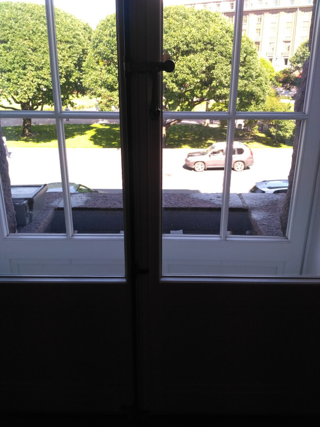 В одном из залов я замечаю, что окна выходят на фасадные балконы. Давайте посмотрим, много ли там места?